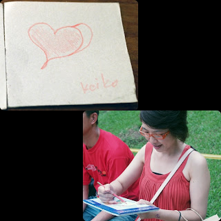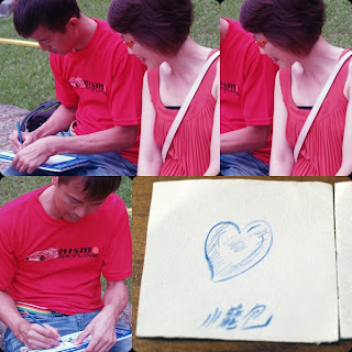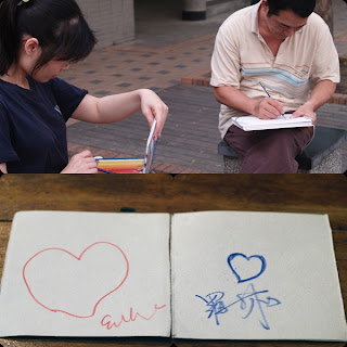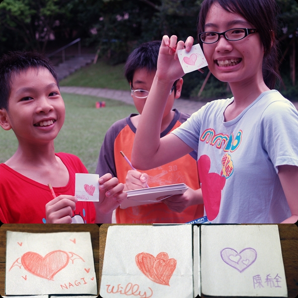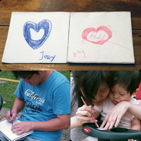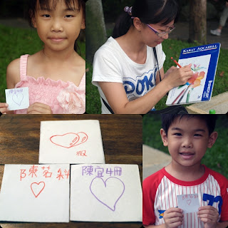 媽媽帶兒子女兒來植物園一起畫呢!小小的手很努力的畫愛 心~超可愛的!長大一定很有氣質喔^^